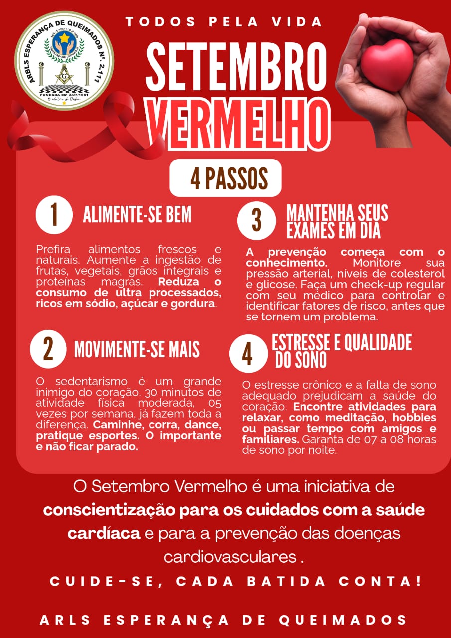 Conscientização Setembro Vermelho e Setembro Amarelo 2025 Setembro é um mês de conscientização e cuidado com a vida. A Loja Maçônica Esperança de Queimados se une às campanhas que marcam este período: ❤️ Setembro Vermelho nos lembra da importância de cuidar da saúde do coração, adotando hábitos saudáveis, prevenindo doenças cardiovasculares e valorizando cada batida […]